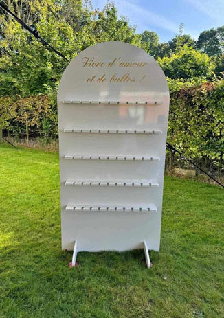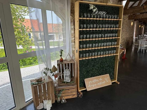 Ajoutez une touche d'élégance et de sophistication à votre événement avec notre magnifique mur à champagne blanc ! Parfait pour les mariages, anniversaires, réceptions ou toute autre célébration, ce mur est conçu pour accueillir jusqu'à 50 flûtes de champagne, offrant ainsi une présentation spectaculaire pour vos invités.
